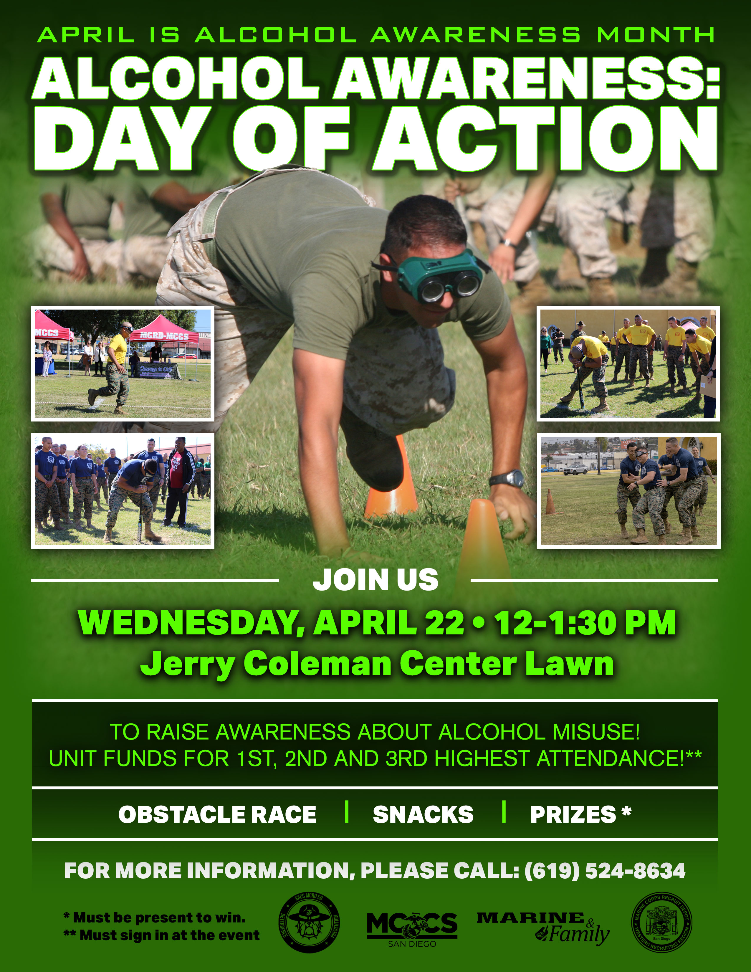 Join us at the Jerry Coleman Center Lawn to increase awareness, understanding, reduce stigmas and encourage our community to focus on alcoholism and alcohol-related issues. There will be activities, entertainment, “Drunk” relay race, and much more!