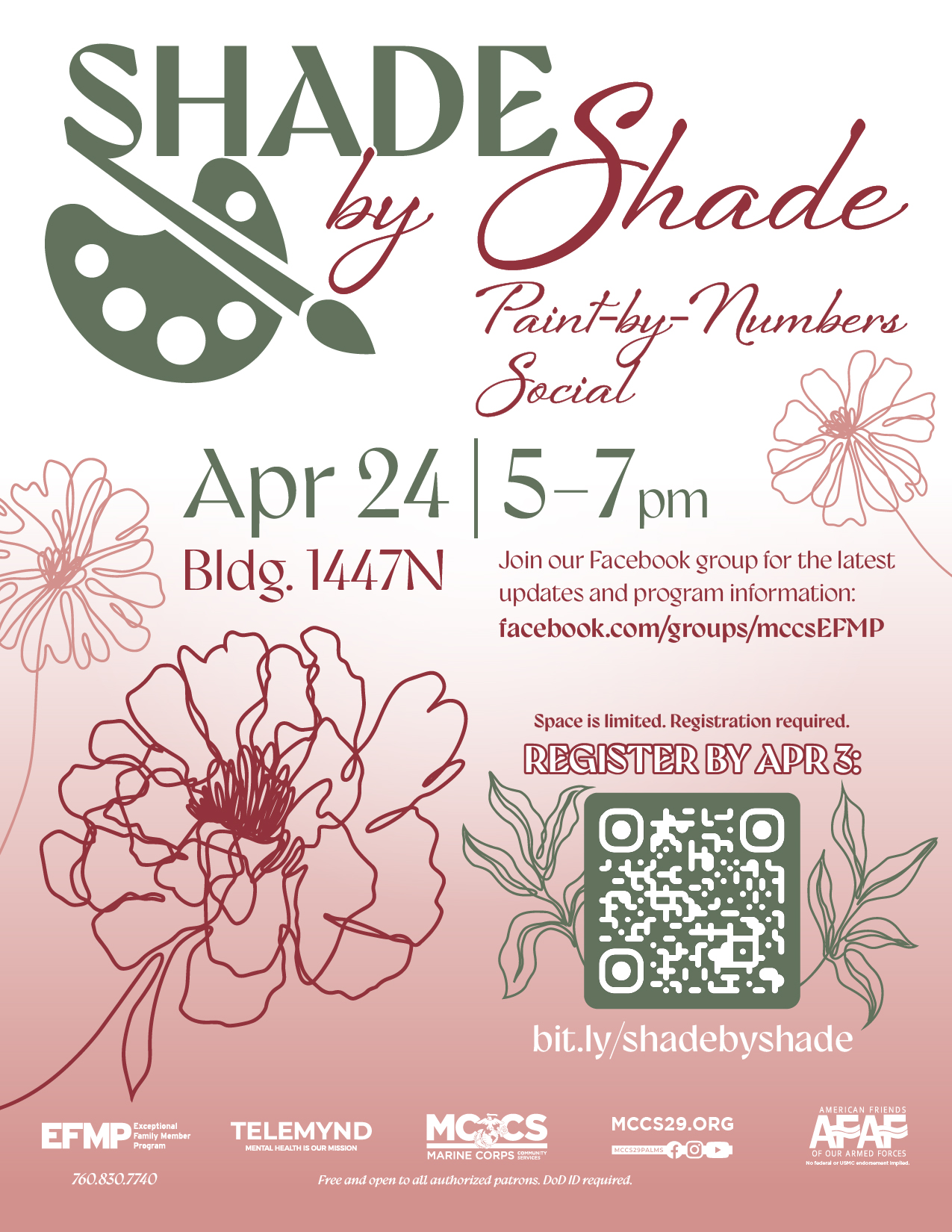Join our Facebook group for the latest updates and program information: facebook.com/groups/mccsEFMP